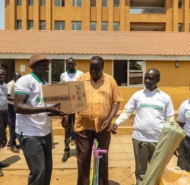 HASS Team donating cleaning materials to Juba Teaching Hospital on 26th February 2025 during the #KeepingOurHospitalsClean Campaign.